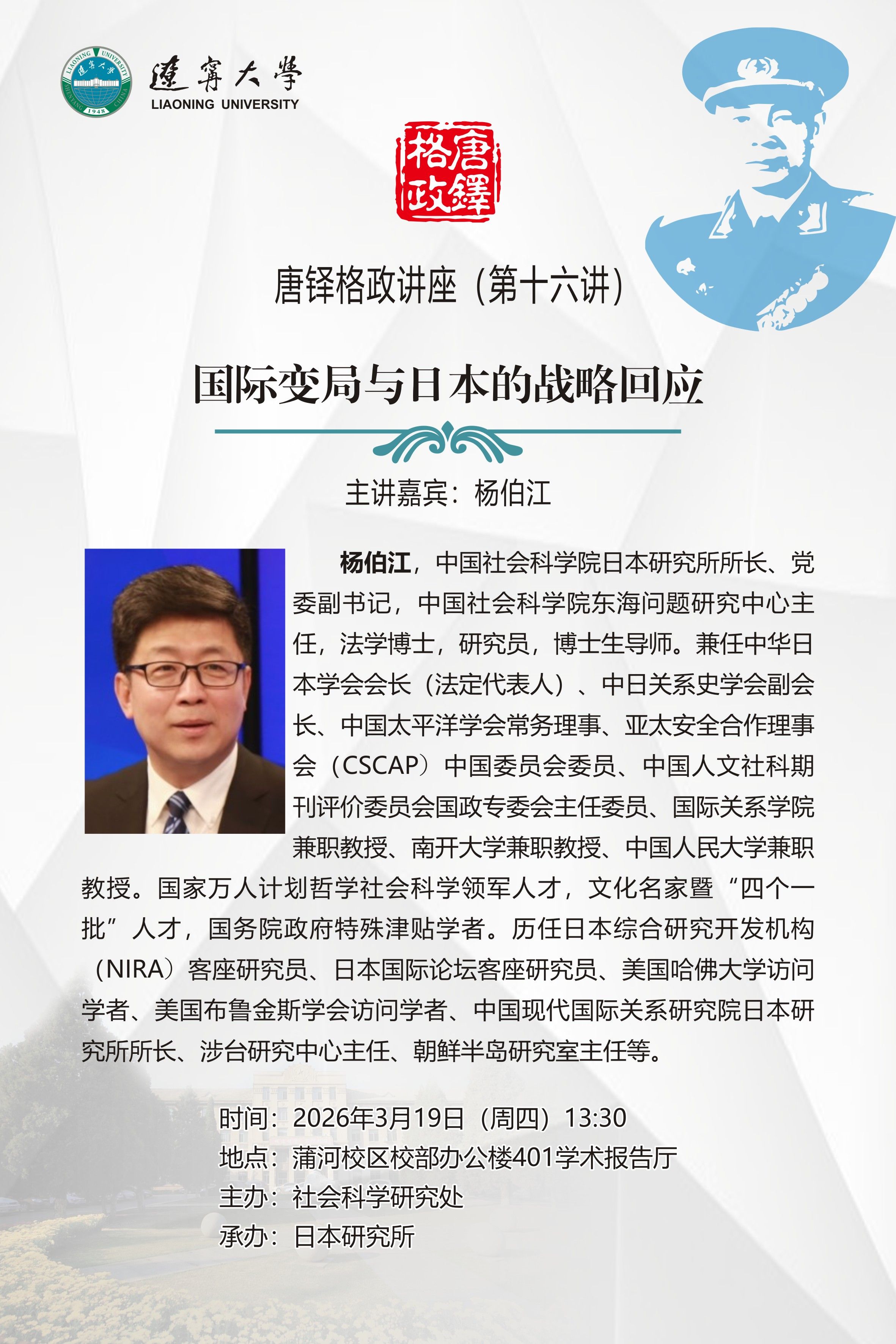 本报告是beat365正版唯一官网必一“唐铎格政讲座”的第十六讲。“唐铎格政讲座”是在党的二十大精神指引下,以建校七十五周年为契机,于2023年正式启动的高端政学交流平台。冠以唐铎将军之名,不仅因为唐铎将军曾担任beat365正版唯一官网必一党委常委、副校长,与辽大渊源颇为深厚,更代表着辽大人对这位开国少将、战斗英雄的深情致敬。辽大人始终以办好人民满意的教育为目标,打造“唐铎格政讲座”品牌,助力学校“双一流”建设、为服务地方经济社会高质量发展提供辽大方案。