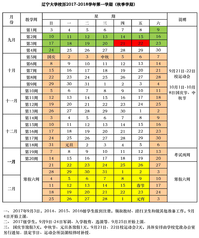 2017-2018学年第一学期(秋季学期)校历