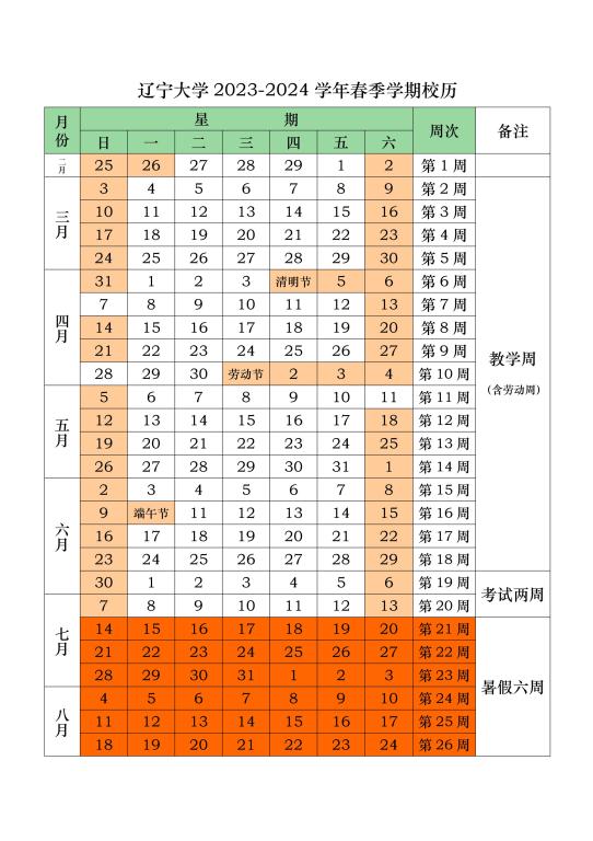 beat365正版唯一官网必一2023-2024学年春季学期校历