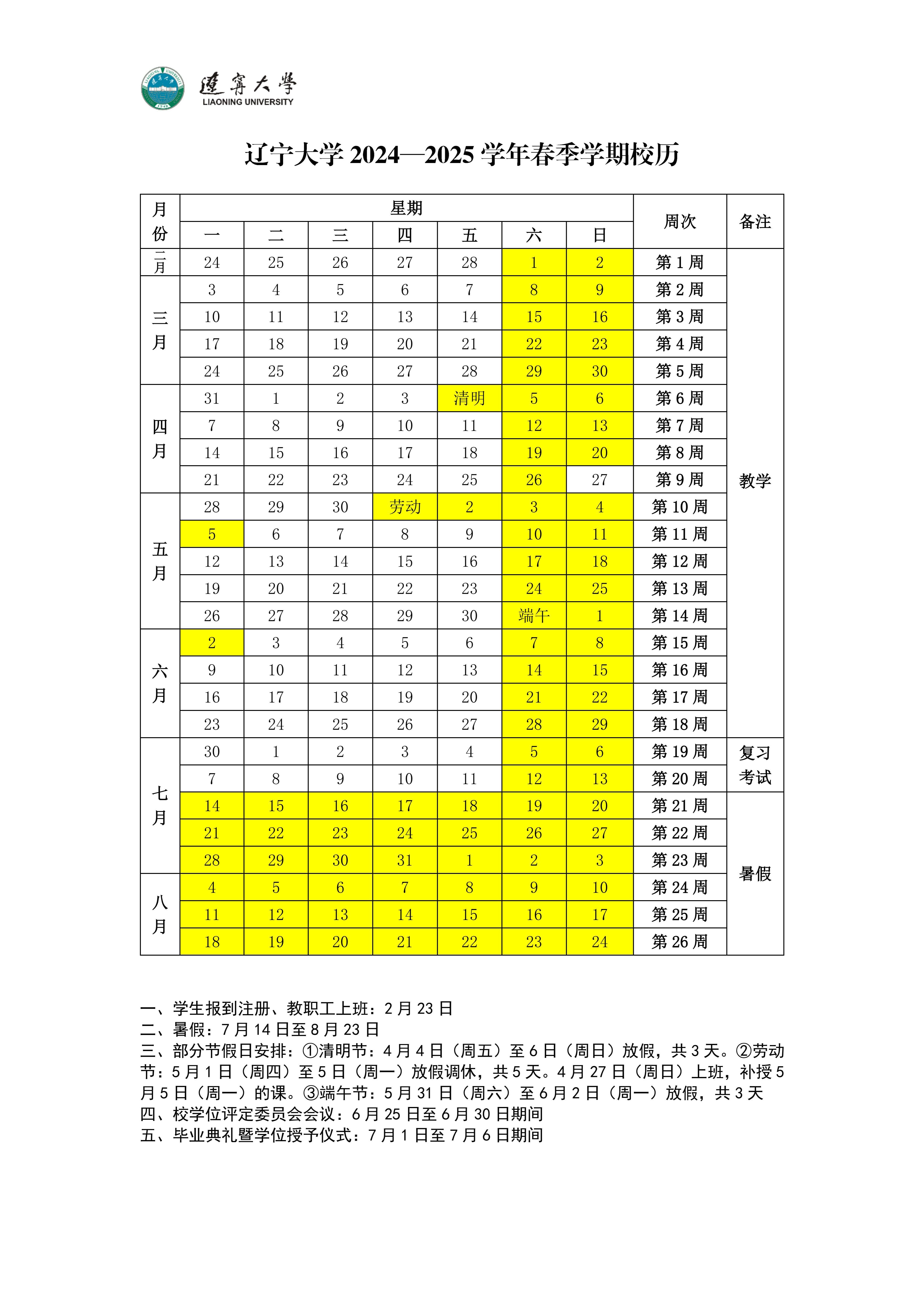 beat365正版唯一官网必一2024-2025学年春季学期校历