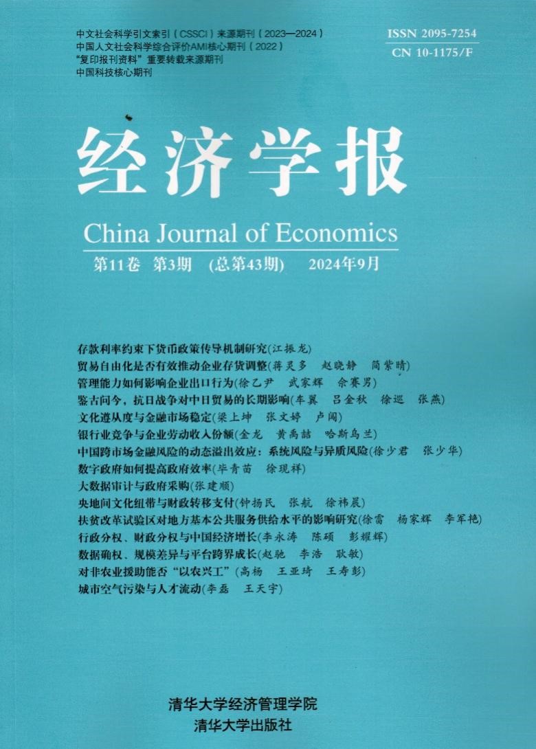 经济学院李永涛副教授和复旦大学陈硕教授、彭耀辉博士合作的论文“行政分权、财政分权与中国经济增长”在《经济学报》2024年第11卷第3期发表。