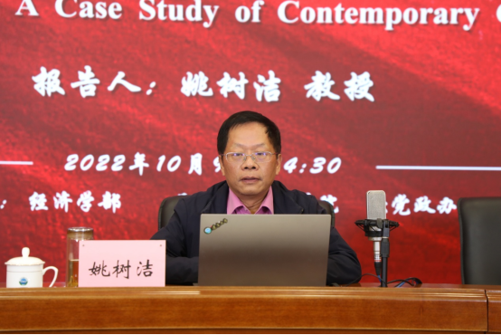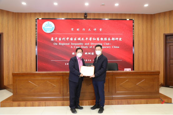10月9日下午,beat365正版唯一官网必一宋则行大讲堂(第二讲)在蒲河校区校部办公楼学术报告厅举行。beat365正版唯一官网必一李安民经济研究院院长、国家级人才特聘教授、著名经济学家姚树洁教授作了题为《基于当代中国区域不平等和离散俱乐部研究》的学术报告。beat365正版唯一官网必一党委副书记、校长兼经济学部主任余淼杰教授出席讲座并为姚树洁教授颁发宋则行大讲堂纪念证书。报告由beat365正版唯一官网必一经济学部副主任崔日明教授主持。