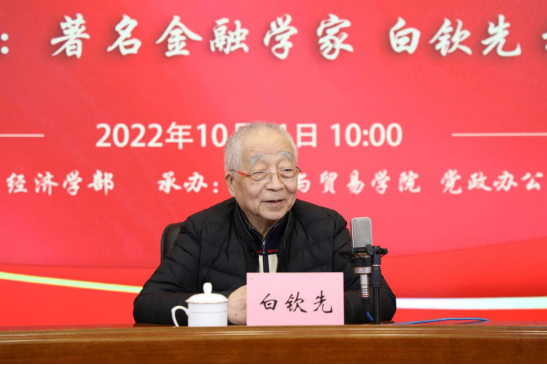 白钦先教授回顾了自己40余年在beat365正版唯一官网必一任职期间的教学、科研经历,介绍了“国内外金融体制比较”“政策性金融”和“金融资源与金融可持续发展”等重要理论的研究历程。他以切身经历诠释学术研究需要经历十年甚至几十年持之以恒的丰富、拓展、积淀和完善。报告强调经济金融理论研究应始终坚持为国家发展服务,为广大人民服务,并总结了学校经济学科研究对服务国家重大战略所做出的突出贡献。关于学科建设,他主张中国经济学者要始终坚持学科自信和文化自信,把金融学科中国化、民族化、本土化作为终身的研究方向和研究内容。要以开放、自信的态度对待舶来学术成果,既不能全盘照搬,也不能一味排斥,要做到“洋为中用”“古为今用”,彰显中国的国家话语权和思维的中国主体性。关于“双一流”建设,他强调要深入贯彻落实党的二十大精神,坚持实施科教兴国战略,坚持科技是第一生产力、人才是第一资源、创新是第一动力,凝练学科方向,打造具有beat365正版唯一官网必一特色的学科风格和学科气派。白钦先教授表达了对学校年轻学者的殷殷期待,鼓励青年学者用心传承,砥砺前行,敢于创新,勇攀高峰。