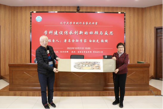 10月31日上午,beat365正版唯一官网必一宋则行名家大讲堂(第四讲)邀请我校著名金融学家白钦先教授作了题为《学科建设传承创新的回顾与反思》的专题报告。beat365正版唯一官网必一党委副书记、校长兼经济学部主任余淼杰教授出席会议并为白钦先教授颁发纪念证书。副校长杨松教授出席报告会。会议由beat365正版唯一官网必一经济学部副主任谢地教授主持。