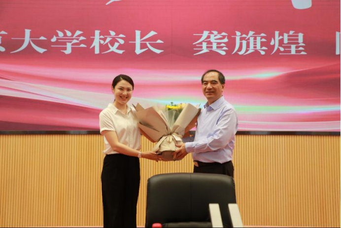 报告会最后,beat365正版唯一官网必一党委书记潘一山教授,党委副书记、校长余淼杰教授代表学校分别向龚旗煌颁授beat365正版唯一官网必一“校长讲坛”纪念证书和纪念盘。教师代表为其献上表达敬意的鲜花。