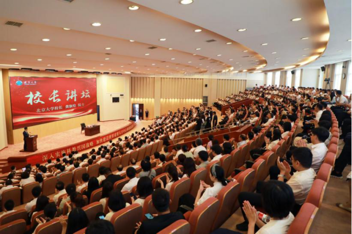 在人才培养方面,龚旗煌表示,北京大学坚持做到“五个聚焦”,积极培养党和国家需要的高水平人才。一是聚焦立德树人根本任务,培养社会主义建设者和接班人。坚持政治性和学理性相统一,倾力打造富有时代特征、体现北大气派、彰显中国特色的思政课;坚持价值塑造、知识传授与能力培养相统一,扎实推进课程思政,发挥如盐入水、润物无声的作用;坚持通识教育和专业教育相统一,塑造学生的完全人格,提升学生的人文与科学素养;坚持“五育并举”,课堂教育与社会实践相统一,促进学生全面发展。二是聚焦高水平科技自立自强,培养高层次创新型人才。坚持面向国家战略需求,不断优化人才培养布局;坚持不拘一格,探索超常规人才培养方式,打造基础学科的人才“珠峰”;坚持产学研用一体,畅通拔尖创新人才的本土化成长路径。三是聚焦世界学术前沿,培养具有学科交叉融合背景的复合型人才。大力推动学科交叉平台建设,积极推动交叉学科专业设置,创新学科交叉背景下的人才培养模式。四是聚焦“四个自信”,培养体现中国特色、中国风格、中国气派的哲学社会科学人才。扎根中国大地,运用马克思主义中国化时代化最新成果,构建本土话语体系;面向国家需求,加强支持保障,让冷门不“冷”、绝学不“绝”;坚持“科技为人文赋能,人文为科技赋值”,以数字人文建设为哲学社会科学人才培养注入新的活力。五是聚焦构建人类命运共同体,培养胸怀天下、具有全球胜任力的大国英才。立足国家对国际化人才的需要,大力推动学生海外学习,塑造学生全球视野;扎实开展来华留学教育,积极培养知华友华的优秀人才;积极建设国际科研合作平台和海外机构,打造汇聚国际资源、联合培养拔尖人才的良好氛围。