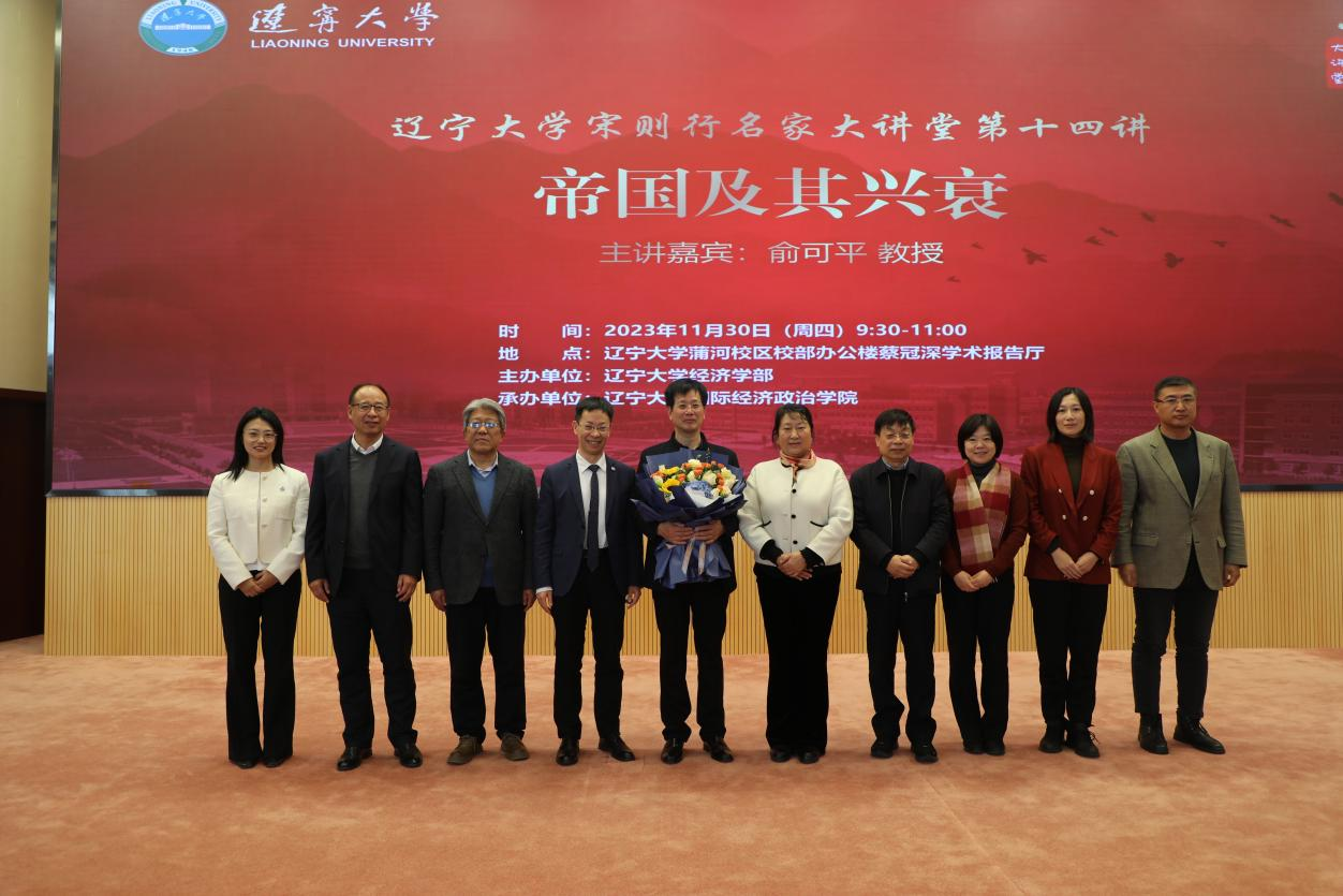 11月30日上午,beat365正版唯一官网必一宋则行名家大讲堂(第十四讲)在蒲河校区校部办公楼蔡冠深学术报告厅举行。著名政治学家、北京大学讲席教授、北京大学中国政治学研究中心主任兼城市治理研究院院长、深圳大学政府管理学院院长俞可平教授应邀作了题为《帝国及其兴衰》的学术报告。第十四届全国人大代表,辽宁省第十四届人大常委会委员,beat365正版唯一官网必一党委副书记、校长余淼杰教授出席报告会并致欢迎辞。会议由beat365正版唯一官网必一党委常委、副校长李淑云教授主持。
