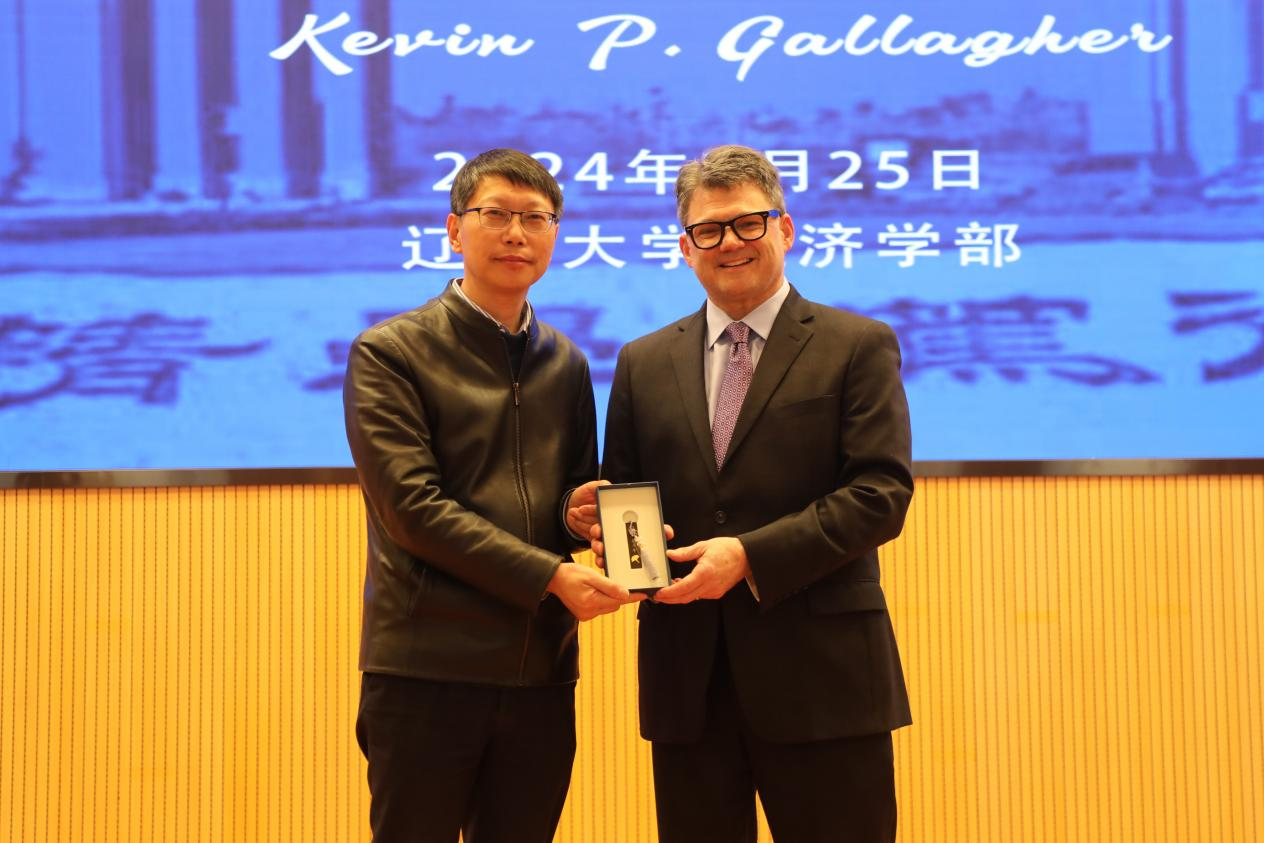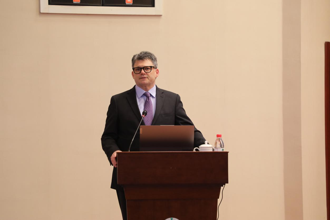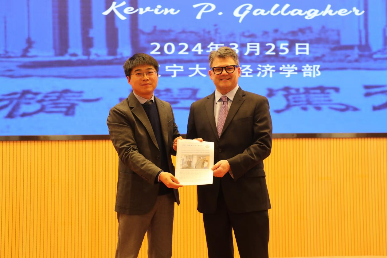 余淼杰校长对凯文・加拉格尔教授应邀出席白钦先海外名家讲座表示诚挚欢迎,详细介绍了凯文・加拉格尔教授的研究领域、学术成就,着重介绍了其对全球经济发展,特别是发展中国家可持续发展作出的重要贡献。