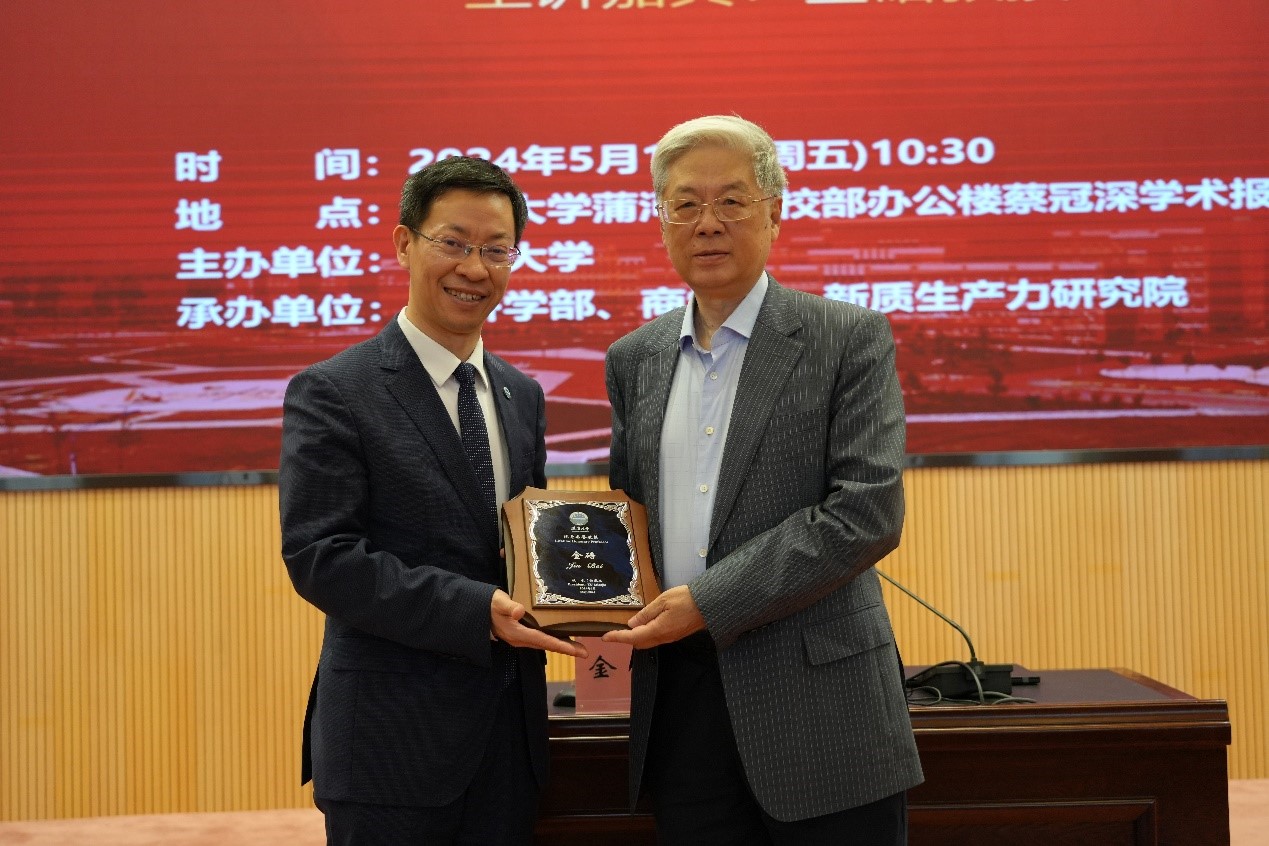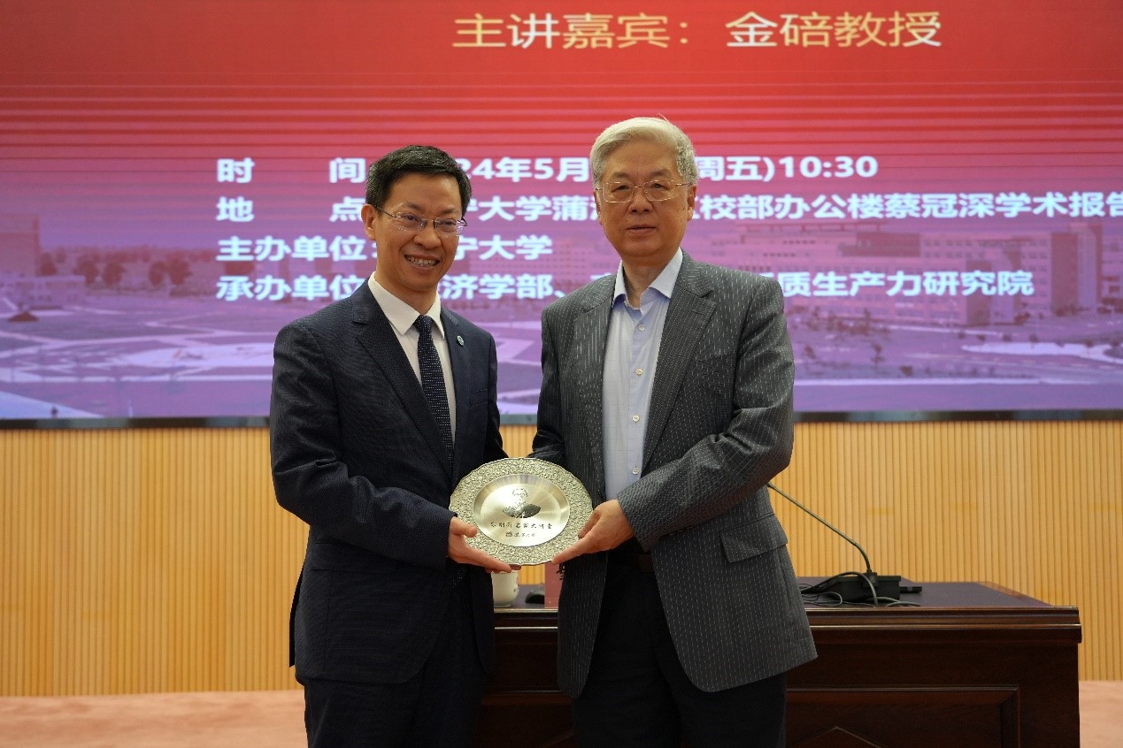 5月17日上午,beat365正版唯一官网必一宋则行名家大讲堂(第十八讲)在蒲河校区校部办公楼蔡冠深学术报告厅举行。著名经济学家,中国社会科学院学部委员金碚教授应邀作了题为《新质生产力研究的经济学思维》的学术报告。本次报告会由beat365正版唯一官网必一主办,经济学部、商学院、beat365正版唯一官网必一新质生产力研究院承办,来自经济学部所属单位主要负责人及师生代表近500人参加会议。会议由beat365正版唯一官网必一经济学部副主任王伟光教授主持。