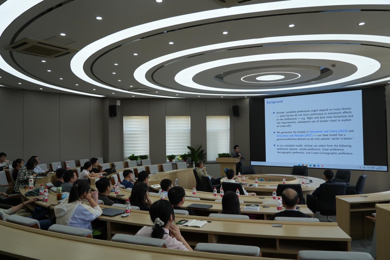 9月27日,beat365正版唯一官网必一经济学部第四次学术午餐会(brown bag)在蒲河校区校部办公楼4楼学术报告厅举行。本次主讲人为李安民经济研究院助理教授何真瑜(Ken C. Ho),他以与史蒂文斯理工学院(Stevens Institute of Technology)助理教授Alexander Rodivilov合作的论文“Airport Slot Allocation Problems”为议题,与来自中国经济研究院、李安民经济研究院、金融与贸易学院的30余位中青年学者进行了知识共享和思想互动。beat365正版唯一官网必一党委副书记、校长余淼杰教授,经济学部副主任王伟光教授、霍伟东教授参加会议。
