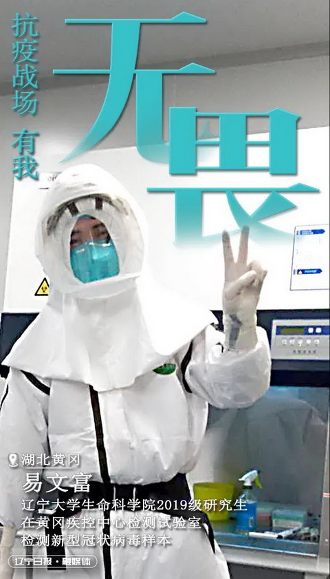 3月5日,《辽宁日报》在学雷锋纪念日到来之际,发布了“新冠防疫”系列学雷锋海报,其中我校生命科学院研究生易文富在湖北省疾控中心实验室的照片被制作成了海报并发布。现将截图转载如下: