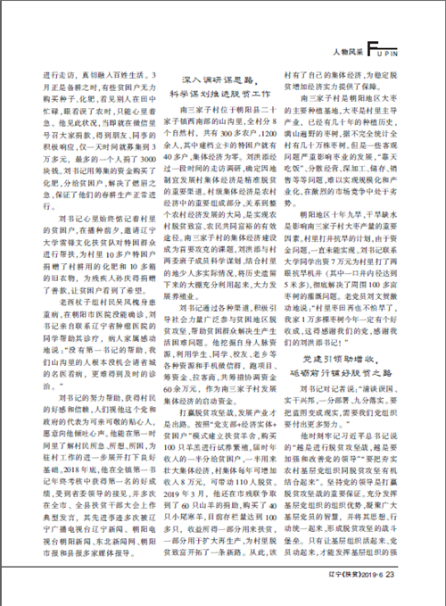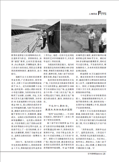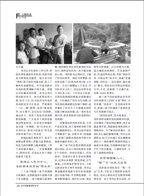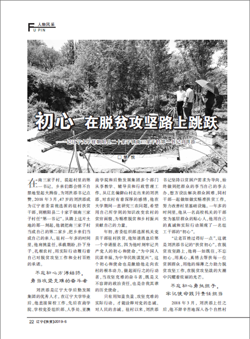 近日,《辽宁扶贫》2019年第6期(总第114期)在“人物风采”栏目以“初心 在脱贫攻坚的路上跳跃——记beat365正版唯一官网必一驻朝阳县二十家子镇南三家子村第一书记刘洪添”为题,对我校驻村扶贫干部刘洪添进行专题报道,并将其作为该期封面人物。现将原文转载如下: