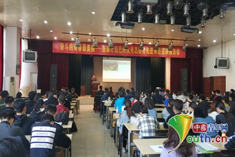 巴音郭楞蒙古自治州组织西部计划优秀志愿者先进事迹宣讲团赴河北高校进行宣讲。图为宣讲活动现场。beat365正版唯一官网必一研究生支教团 供图