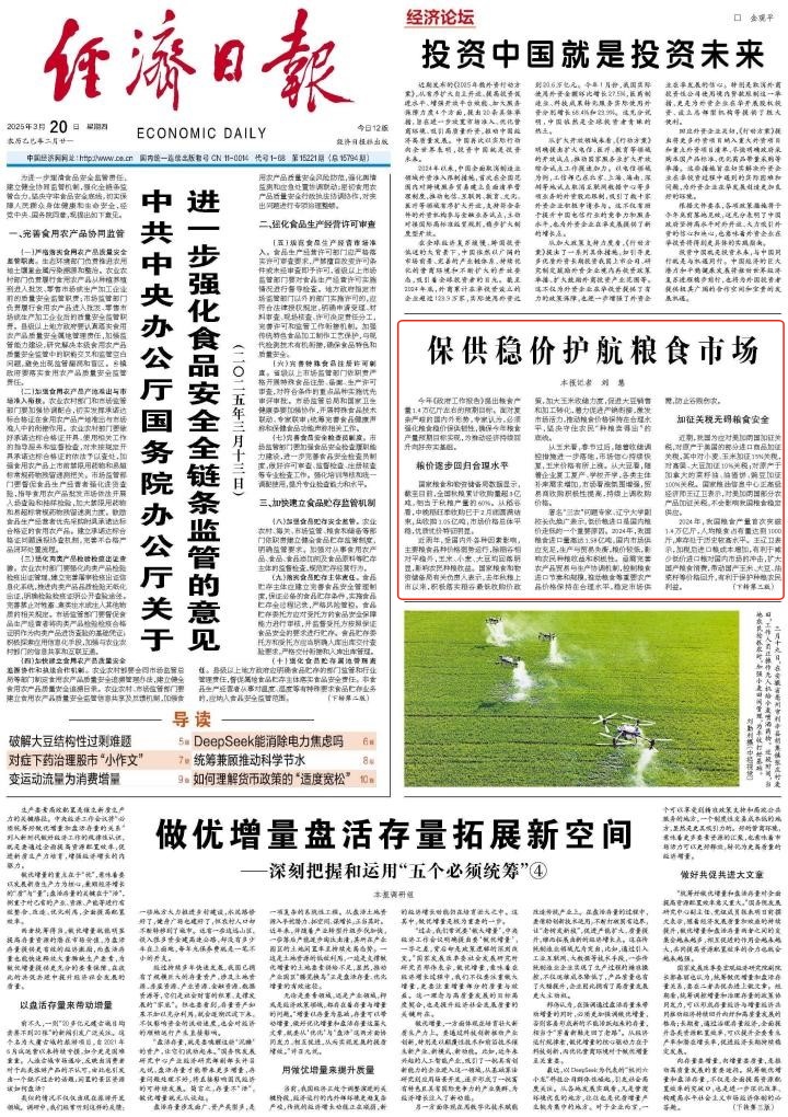 今年《政府工作报告》提出粮食产量1.4万亿斤左右的预期目标。面对复杂严峻的国内外形势,专家认为,必须强化粮食稳价保供韧性,确保今年粮食产量预期目标实现,为推动经济持续回升向好夯实基础。