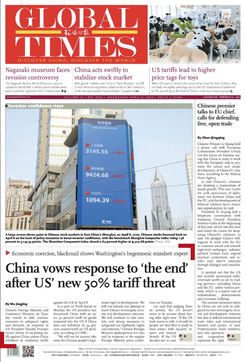 “The economic coercion and blackmail underscores Washington's hegemonic mindset - seeking‘America First'and‘American exceptionalism'by forcing others to make sacrifices,”He Weiwen, a senior fellow at the Center for China and Globalization, told the Global Times on Tuesday.