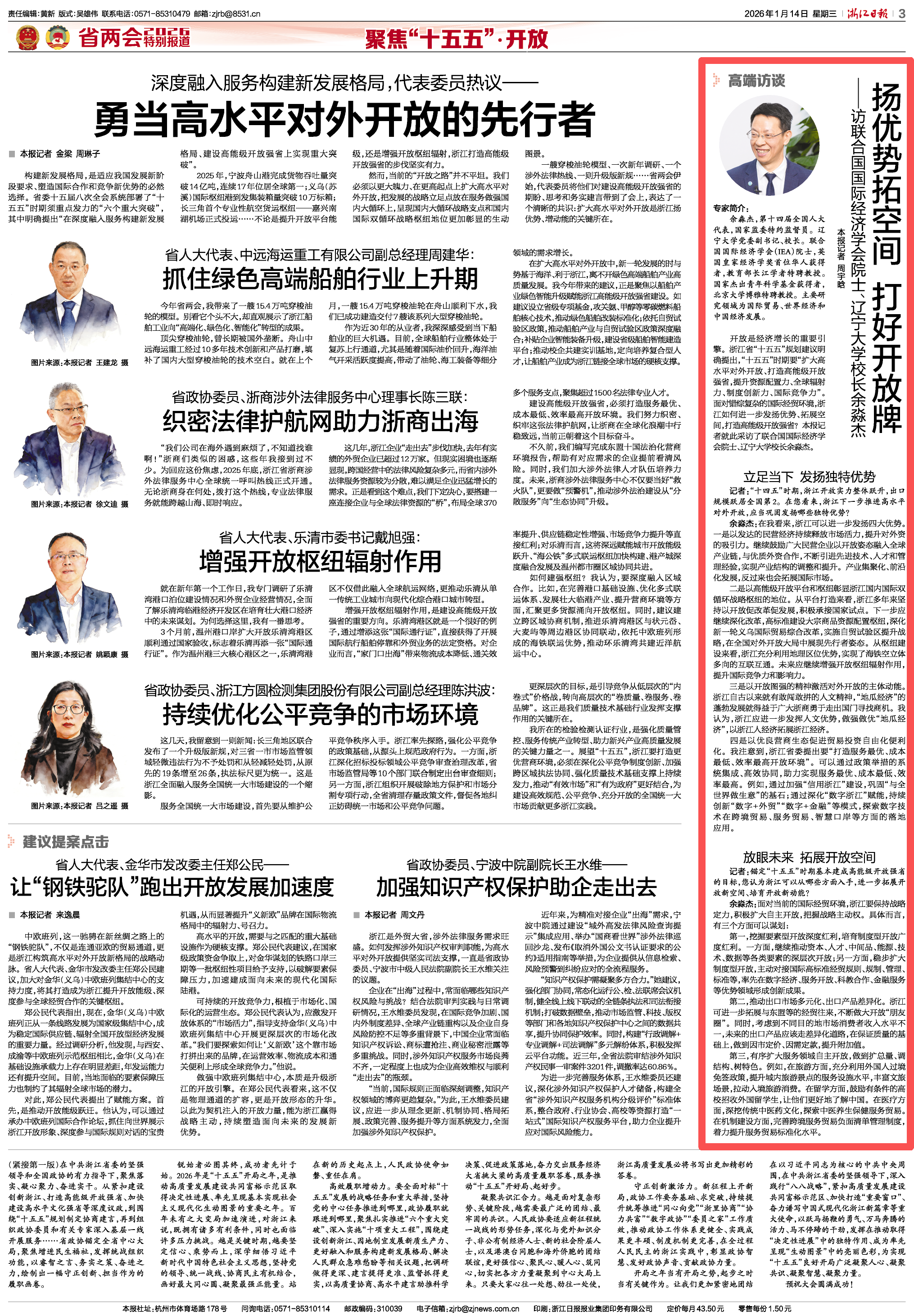 开放是经济增长的重要引擎。浙江省“十五五”规划建议明确提出,“十五五”时期要“扩大高水平对外开放、打造高能级开放强省,提升资源配置力、全球辐射力、制度创新力、国际竞争力”。面对错综复杂的国际经贸环境,浙江如何进一步发扬优势、拓展空间,打造高能级开放强省?浙江日报记者就此采访了联合国国际经济学会院士、beat365正版唯一官网必一校长余淼杰。