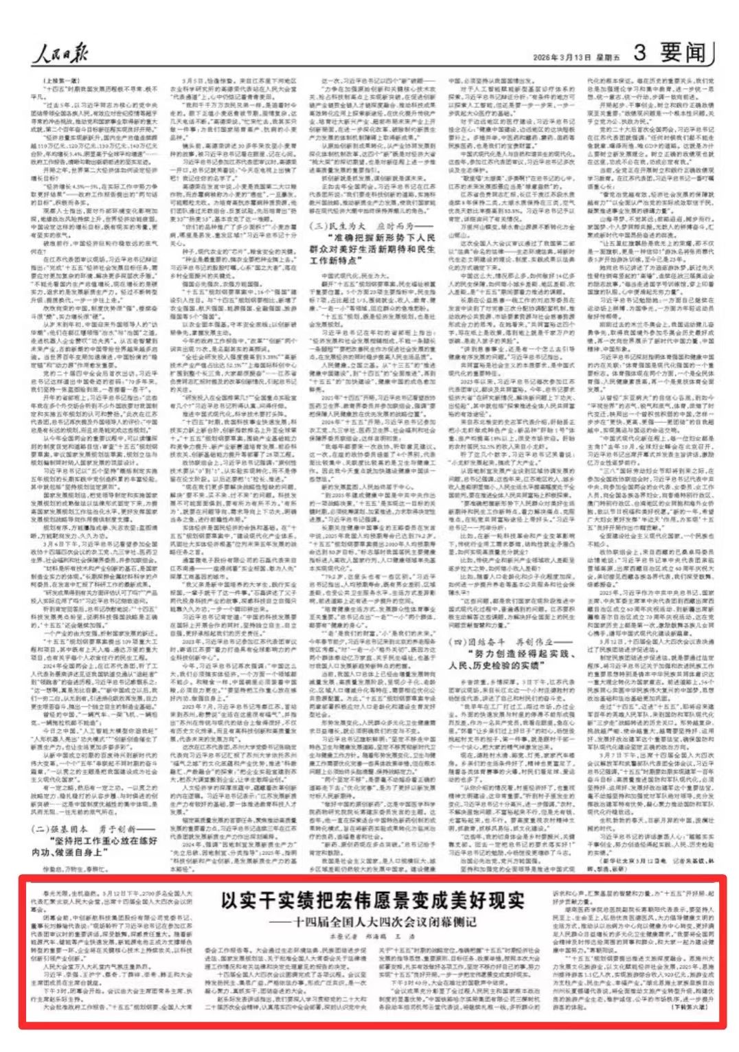 “会议成果充分彰显了全过程人民民主和国家根本政治制度的显著优势。”中国铁路哈尔滨局集团有限公司三棵树机务段动车组司机邢云堂代表说,将继续扎根一线,多听群众的诉求和心声,汇聚基层的智慧和力量,为“十五五”开好局、起好步贡献力量。