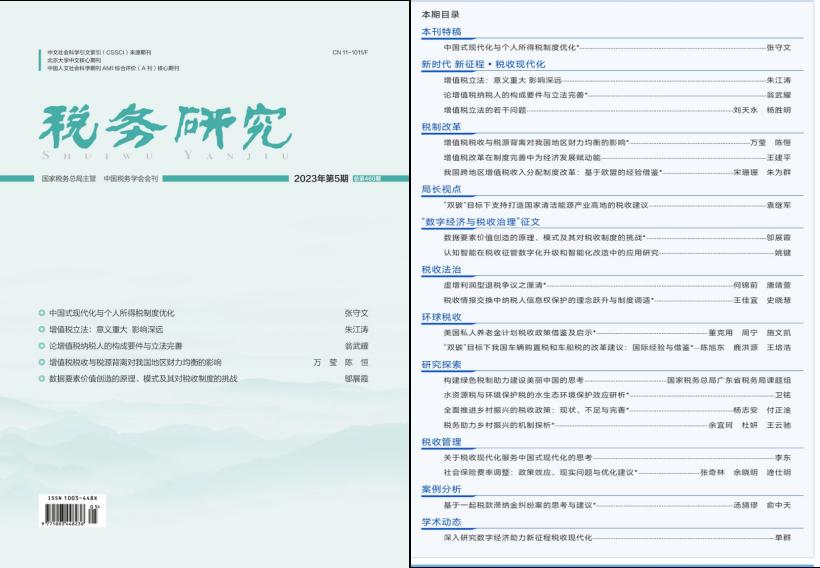 经济学院杨志安教授与博士生付正淦合作论文《全面推进乡村振兴的税收政策:现状、不足与完善》在《税务研究》2023年第5期发表。