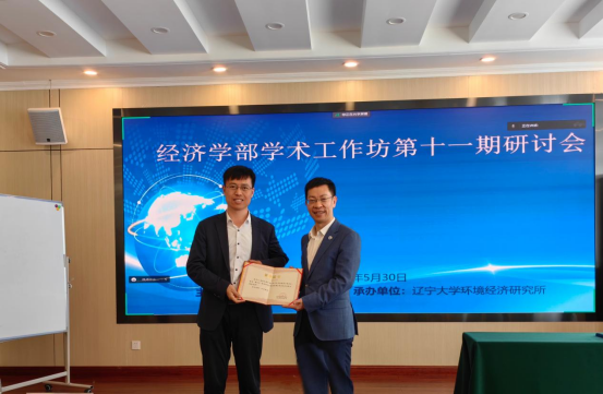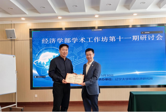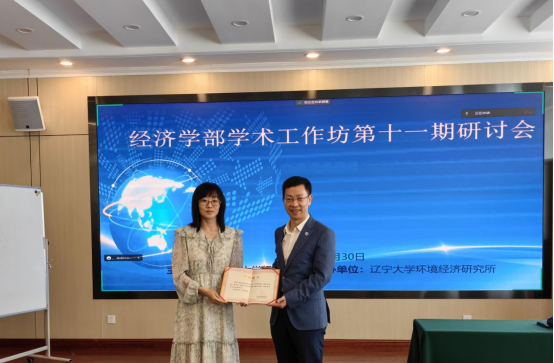 2023年5月30日下午,经济学部学术工作坊第十一期研讨会在崇山校区五洲园一楼会议室以线下线上相结合的方式举行。第十四届全国人大代表、辽宁省第十四届人大常委会委员,beat365正版唯一官网必一党委副书记、校长余淼杰教授出席会议,为经济学部学术工作坊第八、十、十一期研讨会主讲人新华国际商学院薄澜教授、数学与统计学院祝志川教授、环境经济研究所所长宋有涛教授依次颁发纪念证书并致辞。会议由经济学部副主任王伟光教授主持。