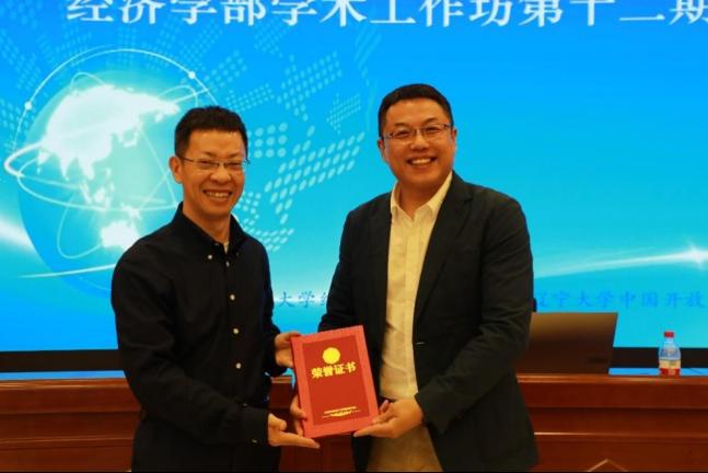余淼杰校长对经济学部学术工作坊给予了高度评价和充分肯定。他强调,要持续举办经济学部学术工作坊,建设好这一重要的学术交流平台,并为本期研讨会主讲教师、中国开放经济研究院分管日常工作的副院长崔铮教授颁发纪念证书。