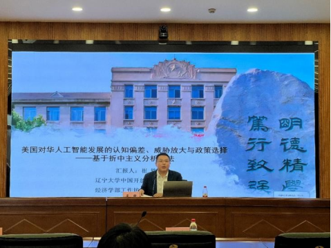 研讨会上,崔铮教授应邀作了题为《美国对华人工智能发展的认知偏差、威胁放大与政策选择——基于折中主义分析方法》的学术报告。以美国对中国人工智能战略进行选择性解读、不断渲染“中国威胁论”引出话题,梳理了在国际政治中认知偏差的产生原因,然后引入分析折中主义概念,搭建具有实用主义色彩的解释机制,采取折中主义分析方法,融合现实主义和建构主义双重视角,探索当一方对他者威胁认知超出合理范围后所产生的结果,接着选取美国对中国人工智能发展战略的认知偏差这一具体案例进行分析,最后对未来中美科技竞合的趋势、中国将面临的发展压力和美国放大中国人工智能威胁可能产生的反噬作用进行总结,并提出研究存在的不足之处。