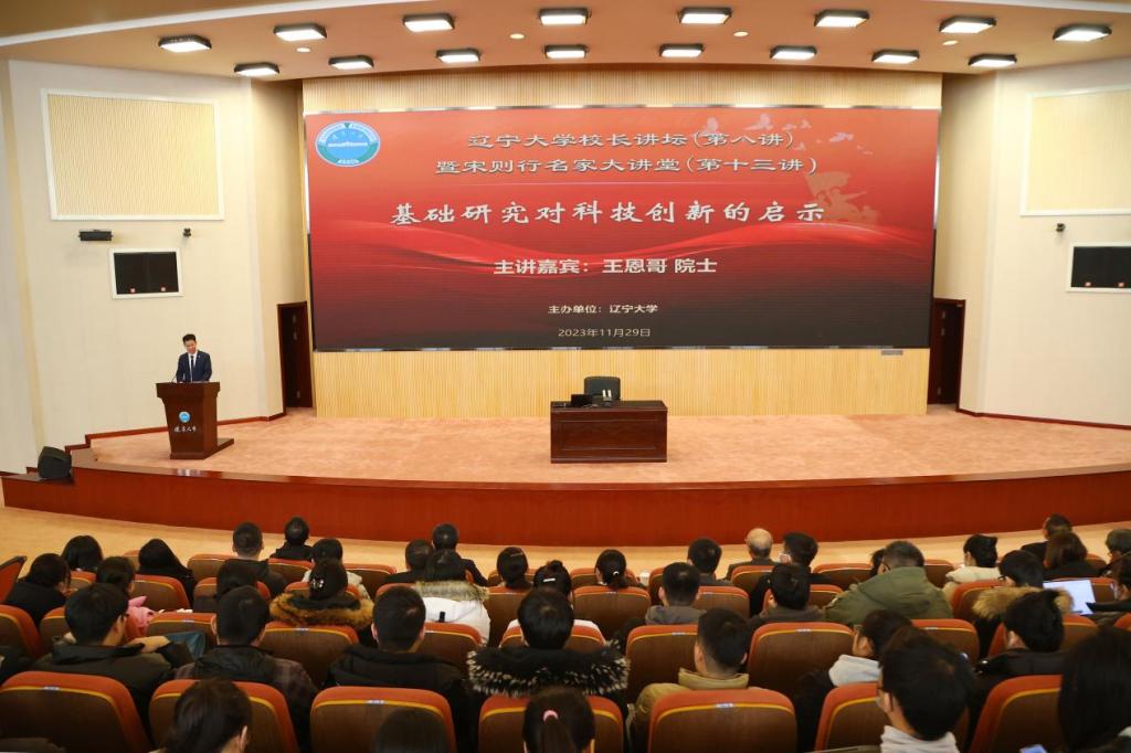 王恩哥院士以《基础研究对科技创新的启示》为题,用深入浅出的语言、学科交叉的视角围绕基础研究与科技创新的关系,讲述了基础研究是科技创新的源动力,从基础科学到成果产业化是一场接力赛,把握好转化中的体制机制改革,不断提升科技创新资源的集聚力、高端科技人才的凝聚力、原始技术的创造力、新兴技术成果的转化力、充足的金融资本整合力和科技创新生态环境的服务力,在国家需求引导下聚焦重大基础科学问题、变革性技术的基础理论问题,强化对前瞻性科学问题的把握,更有效地服务于国家发展战略。王恩哥院士结合自己几十年的科研工作经历,以其深厚的学识,独到的见解,为辽大师生带来了一场前沿的学术盛宴。