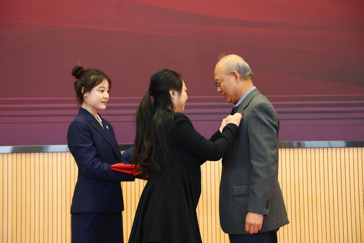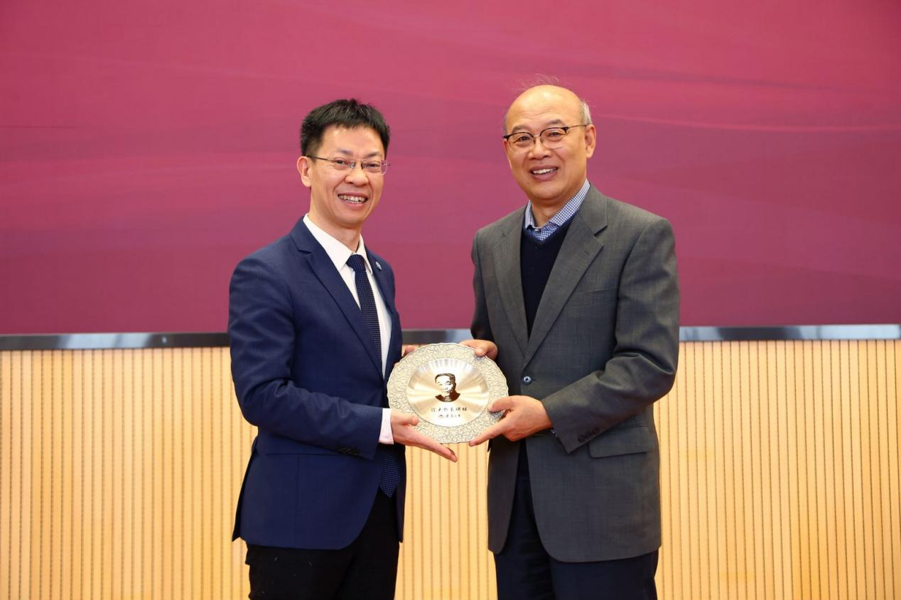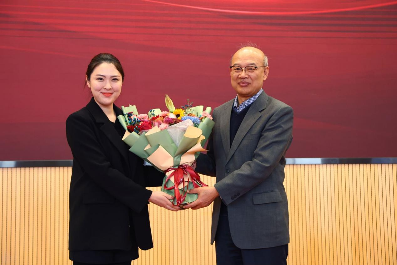 报告会结束后,beat365正版唯一官网必一党委副书记、校长余淼杰教授为王恩哥院士颁发“校长讲坛”纪念盘及“杰出校友”纪念盘,beat365正版唯一官网必一教师代表宁崇、卢雪梅分别为其献花并佩戴校徽、赠送校帽。