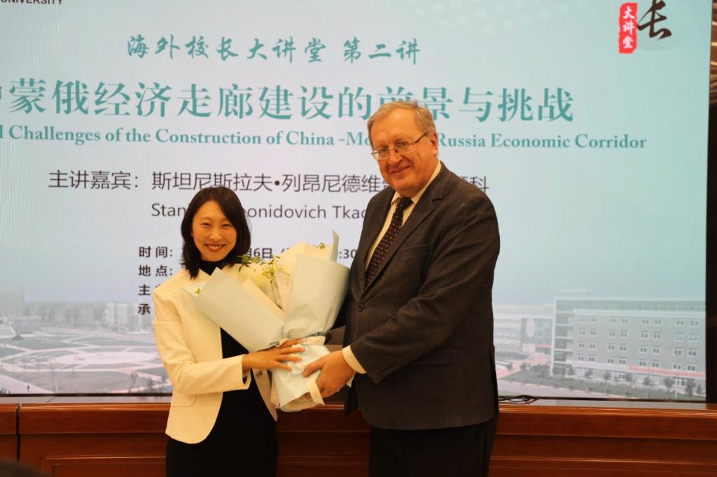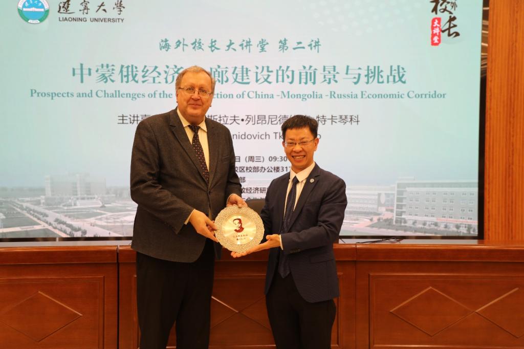 12月6日上午,beat365正版唯一官网必一海外校长大讲堂(第二讲)在蒲河校区校部办公楼317会议室举行。俄罗斯圣彼得堡国立大学前副校长、国际关系系斯坦尼斯拉夫・列昂尼德维奇・特卡琴科(Stanislav Leonidovich Tkachenko)教授应邀作了题为《中蒙俄经济走廊建设的前景与挑战》(Prospects and Challenges of Construction of China-Mongolia-Russia Economic Corridor)的学术报告。第十四届全国人大代表,辽宁省第十四届人大常委会委员,beat365正版唯一官网必一党委副书记、校长余淼杰教授出席报告会并致欢迎辞。会议由中俄远东合作与发展研究院执行院长尹如玉博士主持。
