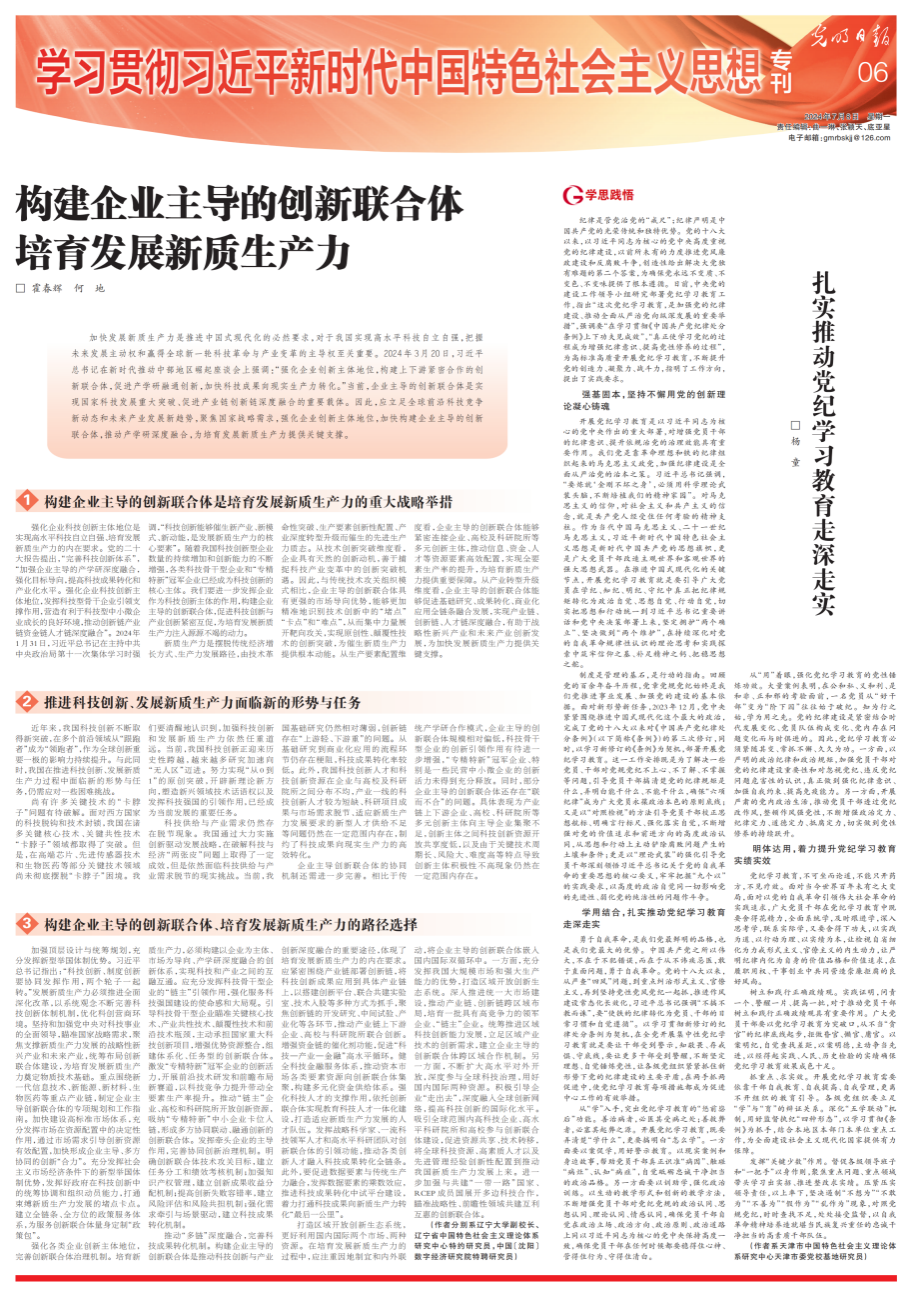 亚澳商学院霍春辉教授与何地老师合作撰写的文章“构建企业主导的创新联合体 培育发展新质生产力”在《光明日报》2024年7月8日第06版“学习贯彻习近平新时代中国特色社会主义思想”专刊发表,并于7月9日被光明网光明理论头条版转载刊登。