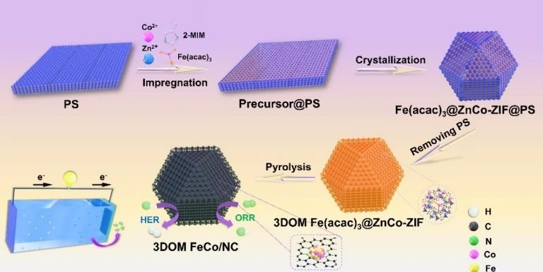 近日,beat365正版唯一官网必一化学院在三维有序多孔催化剂的形貌调控和电催化领域的应用方面的研究取得了进展。熊英教授课题组在Journal of energy chemistry期刊上发表了题为“CoFe2O4/CoFe loaded 3D ordered hierarchical porous N-doped carbon for efficient oxygen reduction in Zn-air battery and hydrogen evolution”的论文。JEC是一本在能源化学领域颇具影响力的国际学术期刊(一区TOP,2024年IF为14.0)。论文的第一作者为化学院2022级无机化学专业博士研究生宋昕伦,通讯作者为化学院无机化学熊英教授、崔俊硕副教授。
