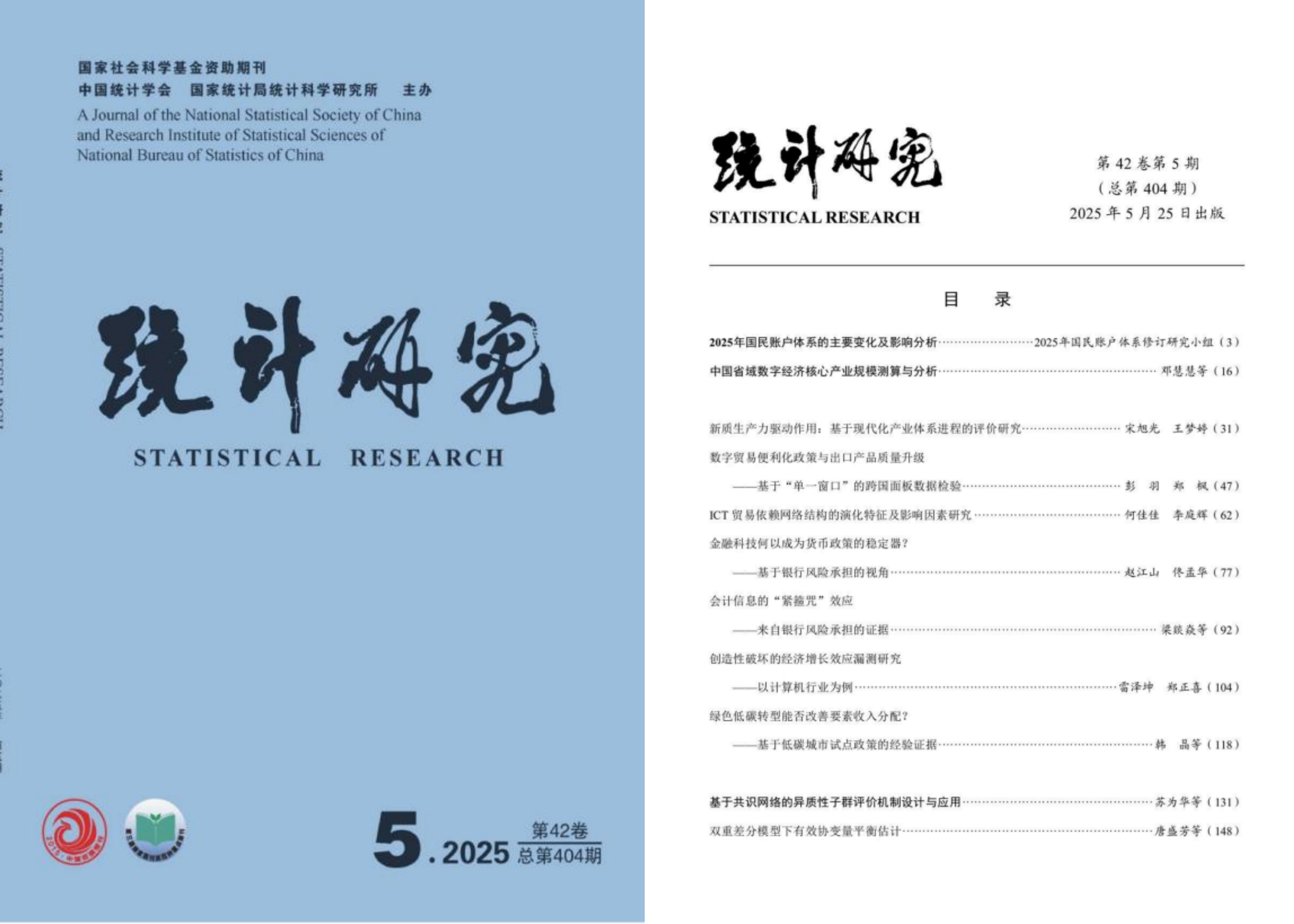 经济学院赵江山讲师与东北财经大学佟孟华教授合作撰写的学术论文《金融科技何以成为货币政策的稳定器?——基于银行风险承担的视角》在《统计研究》2025年第5期发表。