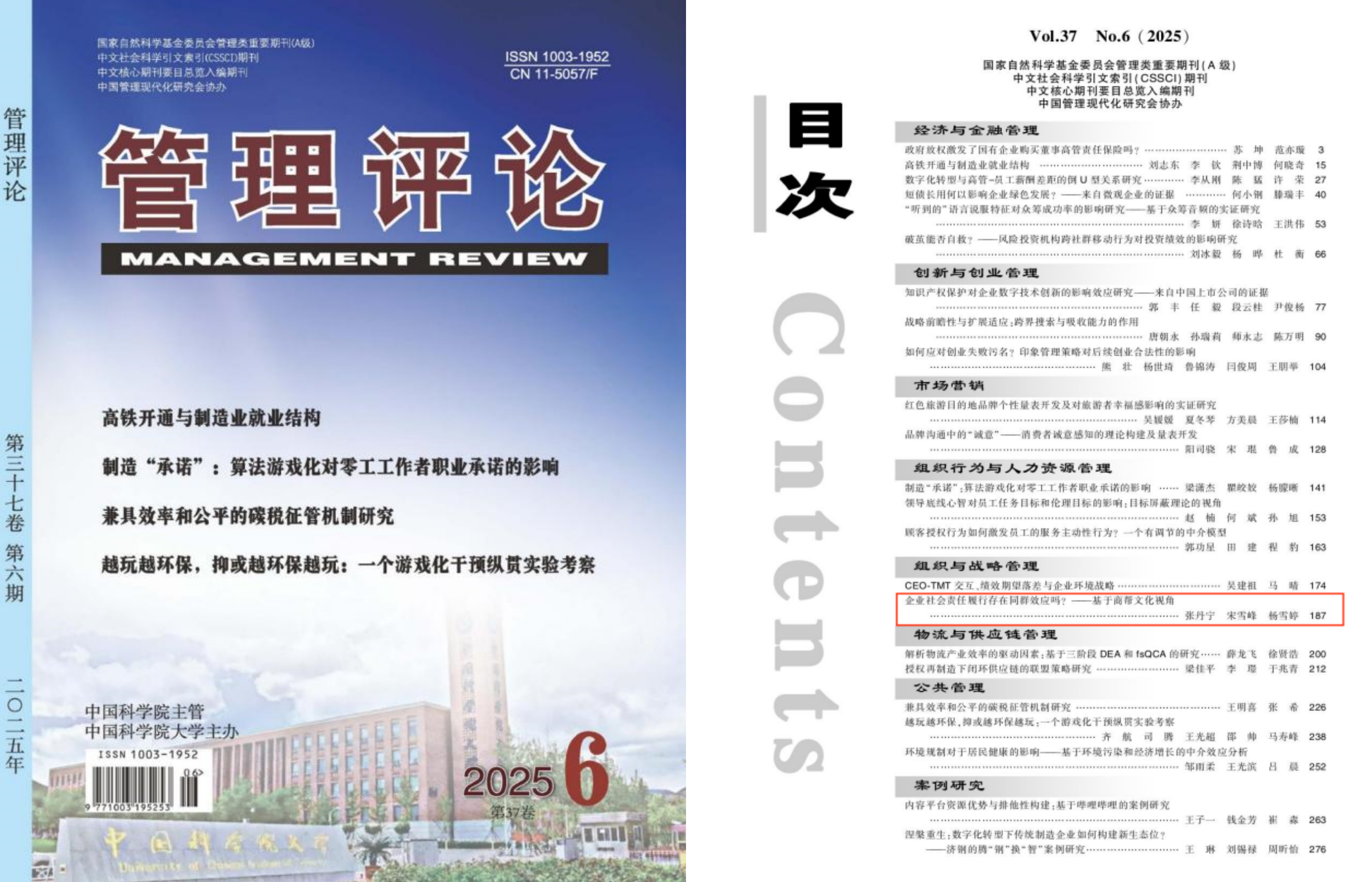 近日,经济学院张丹宁教授与博士研究生宋雪峰、杨雪婷合作撰写的学术论文在《管理评论》2025年第6期发表,题为《企业社会责任履行存在同群效应吗?——基于商帮文化视角》。