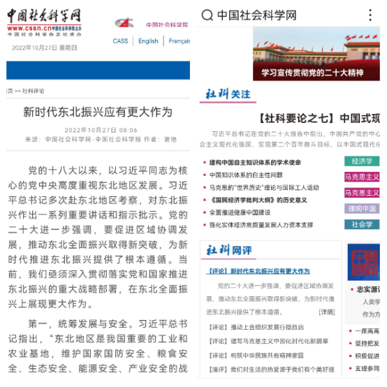 beat365正版唯一官网必一经济学院谢地教授在2022年10月27日的《中国社会科学报》发表题为《新时代东北振兴应有更大作为》的署名文章,结合东北振兴,畅谈学习党的二十大报告的心得体会。