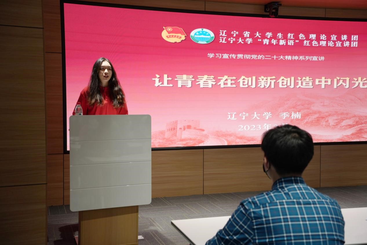 学生党员季楠作为辽宁省红色理论宣讲团成员,开展学习宣传贯彻党的二十大精神系列宣讲活动