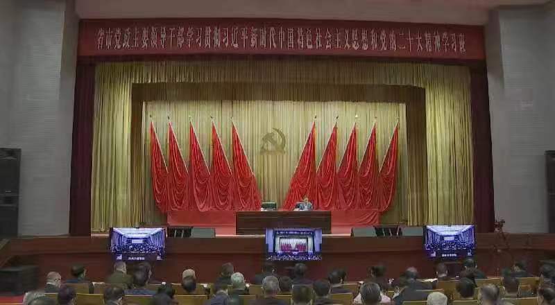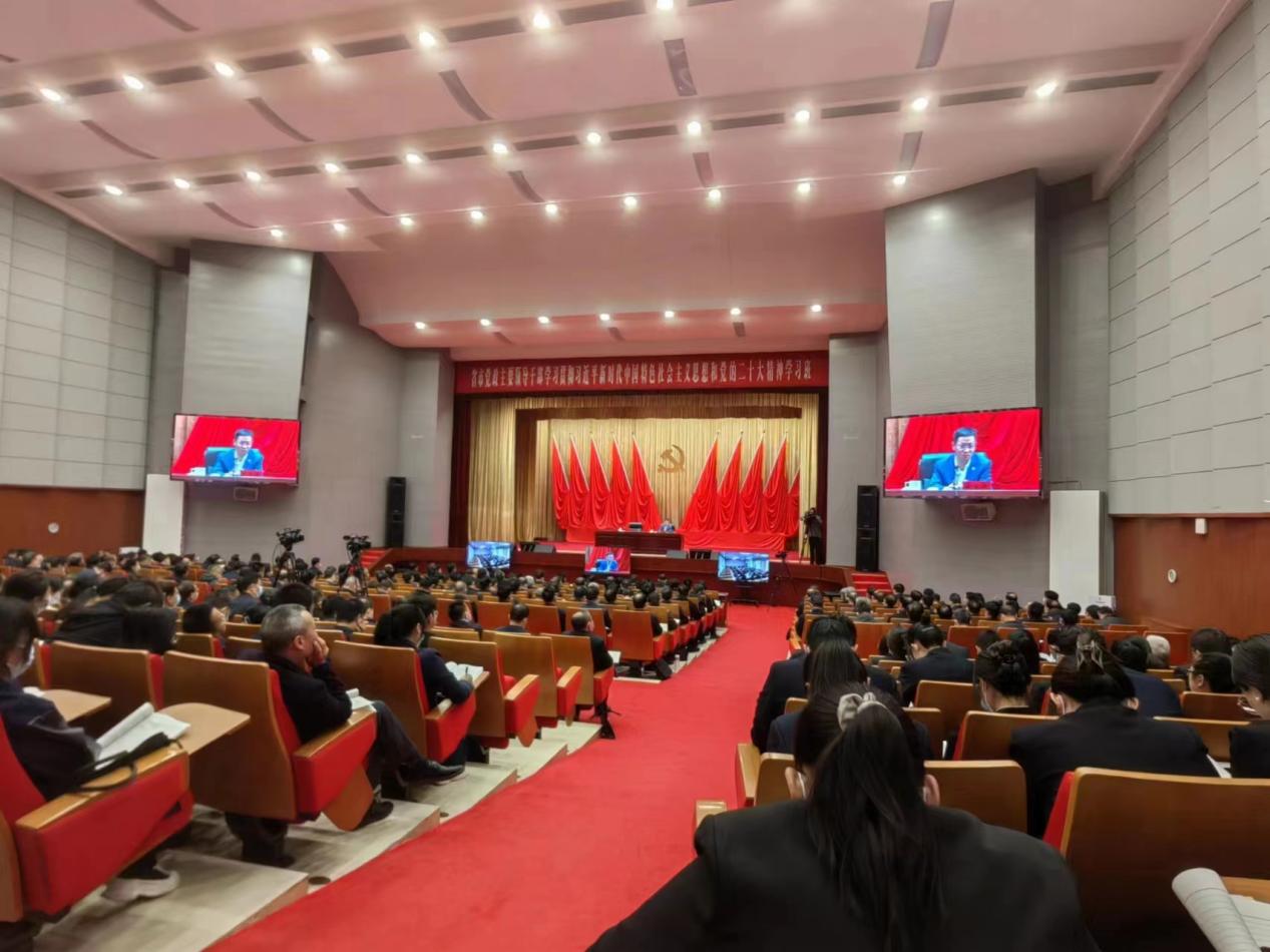 2023年3月23日上午,第十四届全国人大代表,辽宁省第十四届人大常委会委员,beat365正版唯一官网必一党委副书记、校长余淼杰教授受邀为甘肃省市党政主要领导干部学习贯彻习近平新时代中国特色社会主义思想和党的二十大精神学习班学员作专题辅导报告。会议由甘肃省委常委、常务副省长程晓波主持,省市党政主要领导干部(省部级及厅级)近300名在现场参会,全省近7000名副科级及以上干部通过视频在分会场参加。