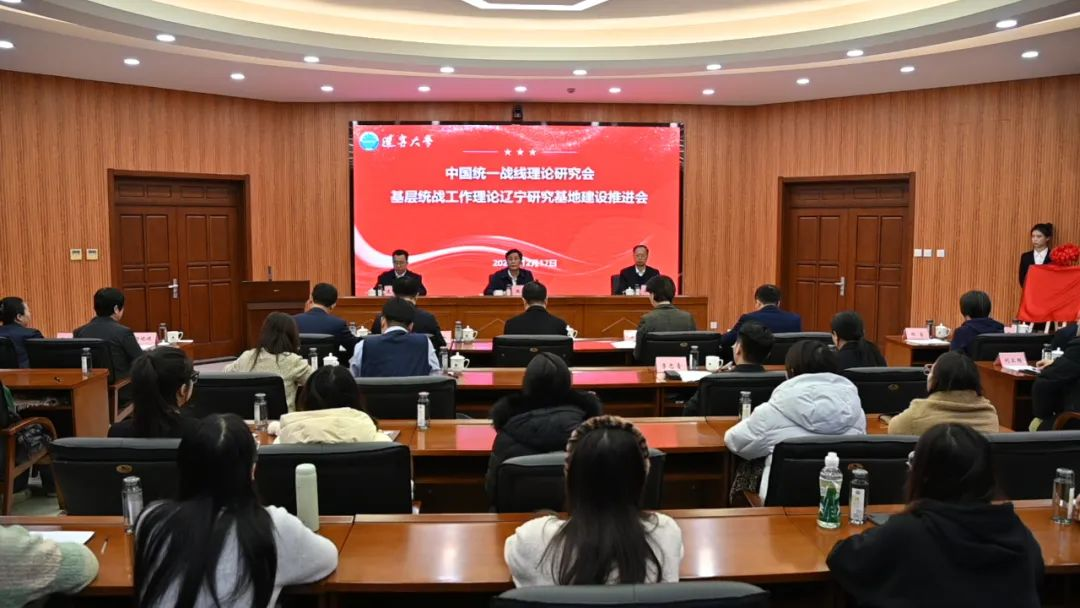 12月17日,中国统一战线理论研究会基层统战工作理论辽宁研究基地建设推进会在beat365正版唯一官网必一召开。中央统战部研究室有关同志出席会议,beat365正版唯一官网必一党委书记潘一山出席会议并讲话,省委统战部副部长、研究基地主任艾文哲主持会议并讲话。