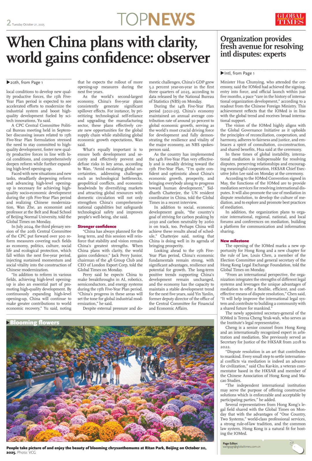 As the country has implemented the 14th Five-Year Plan very effectively and is steadily driving toward the 15th Five-Year Plan, "I'm quite confident and optimistic about China's economic growth, prosperity, and bringing everybody along to progress toward human development," Siddharth Chatterjee, the UN resident coordinator in China, told the Global Times in a recent interview.