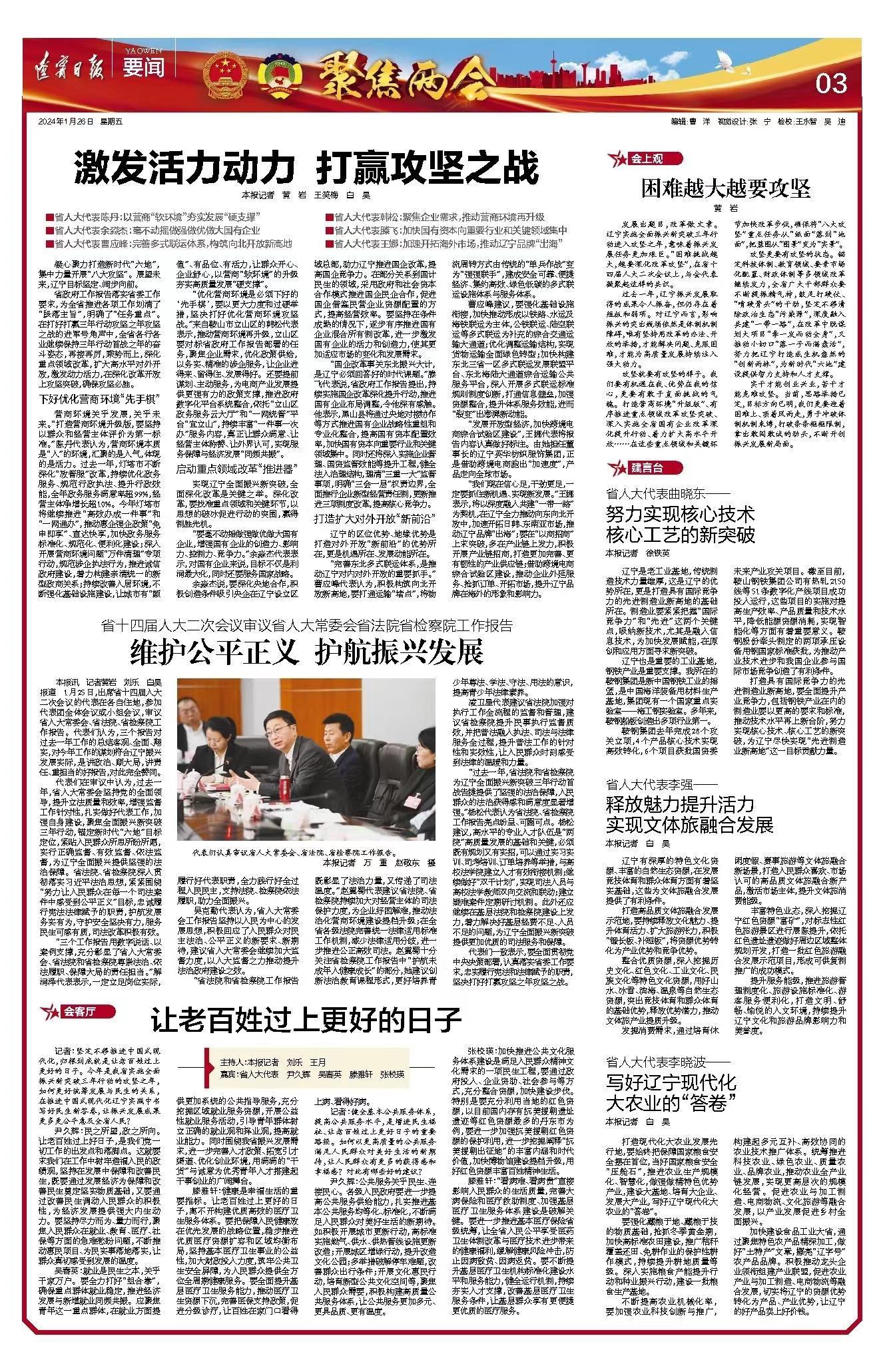 1月26日,在辽宁省两会召开之际,《辽宁日报》要闻版报道了对第十四届全国人大代表,辽宁省第十四届人大常委会委员,beat365正版唯一官网必一党委副书记、校长余淼杰教授的采访,现将原文转载如下: