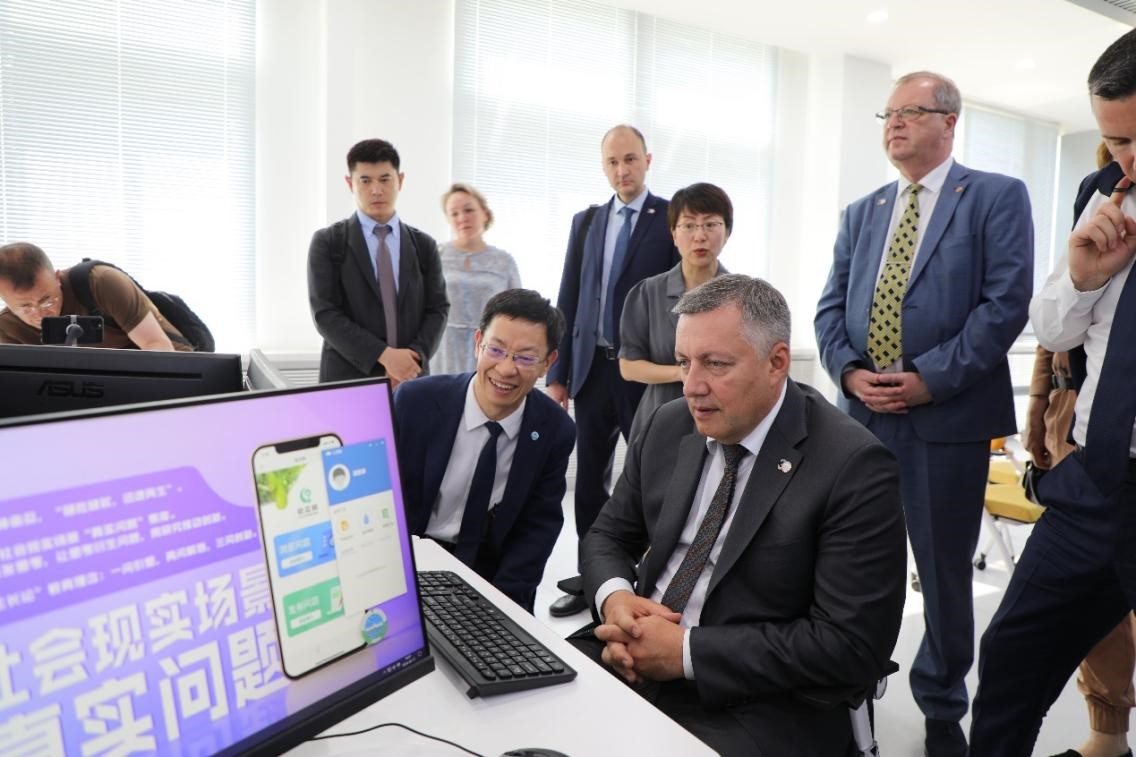 交流活动期间,校长余淼杰陪同伊尔库茨克州教育交流代表团参观了beat365正版唯一官网必一云经济实验室、场景作用机理实验室和校史馆,对beat365正版唯一官网必一的发展历程及创新型科研成果进行介绍。