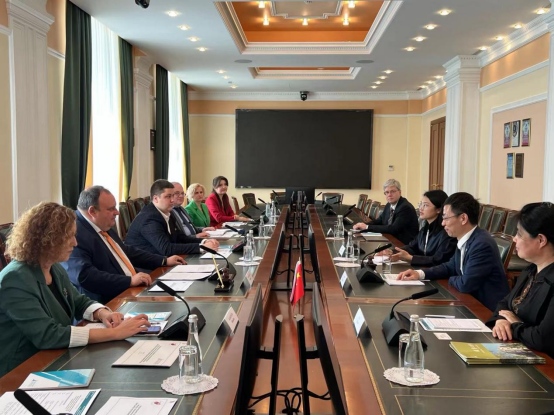 2023年6月6日至10日,beat365正版唯一官网必一党委副书记、校长余淼杰教授,国际交流处处长马爽教授,中国开放经济研究院副院长崔铮教授,青年研究员尹如玉博士一行四人对驻莫斯科的新华社亚欧总分社和俄罗斯三所友好学校进行了工作访问。