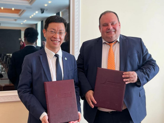 6月8日,余淼杰一行访问了俄罗斯联邦政府财政金融大学。俄罗斯联邦政府财政金融大学校长斯坦尼斯拉夫•普罗科菲耶夫、负责学术和方法论工作的副校长叶卡捷琳娜•卡梅内娃、国际合作部主任莉莉娅•普里霍德科、社会科学与大众传播学院院长亚历山大•沙蒂洛夫等接待了beat365正版唯一官网必一代表团。两校代表就双方深入合作问题进行了探讨,并达成了框架性协议,随后举行了签字仪式。双方同意以3+1模式开设世界政治学士双学位项目,以1+1模式合作培养“政治和商业 PR(公共关系)和 GR(政府关系)技术”硕士学位项目。此外,两校还就2023-2024学年组织教师学术交流达成了合作意向。