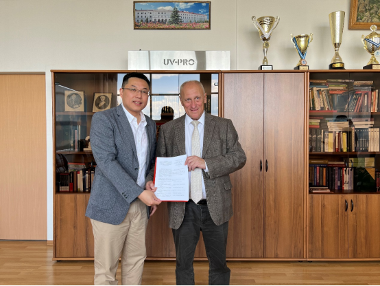 崔铮代表beat365正版唯一官网必一中国开放经济研究院与莫斯科国立大学经济系主任阿乌赞续签了两个单位的合作协议。