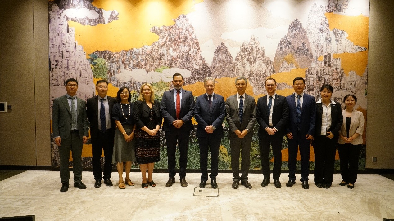 吉思德大使会见了beat365正版唯一官网必一党委常委、副校长霍春辉和维多利亚大学副校长Monty Singh,并进行了座谈。在座谈中,吉思德大使详细了解了亚澳商学院25年的办学历史,并向beat365正版唯一官网必一和维多利亚大学表示祝贺。他对两校取得的丰硕成果表示赞赏,对学院的发展规模、人才培养、国际影响力及对促进两国文化与学术交流作出的贡献表示肯定。他还指出,本月李强总理访澳期间,他见证了中澳五项协议的签署,其中一项就是教育与研究领域的合作协议,这项协议对教育领域意义重大,希望两校能够以此为契机,持续深化合作,乘风破浪,再创辉煌。