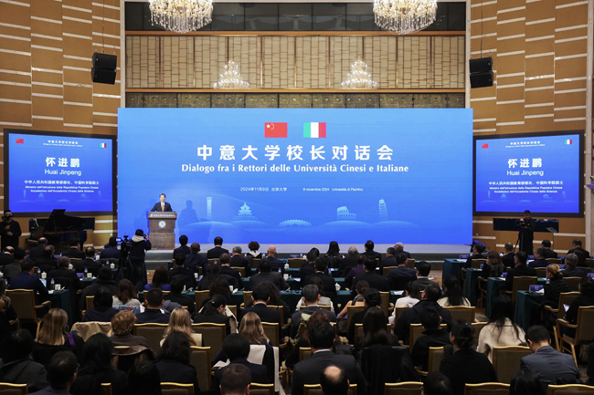 为落实两国元首共识、深化教育交流合作,11月9日上午,中意大学校长对话会在北京大学举行。此次对话会由中华人民共和国教育部、意大利共和国大学与科研部主办,北京大学、中南财经政法大学承办,以“促进文明互鉴,培养杰出人才”为主题,设置两个平行论坛和一个平行学生论坛,共同探讨中意高等教育合作、协同创新、高水平人才培养模式以及可持续发展未来。