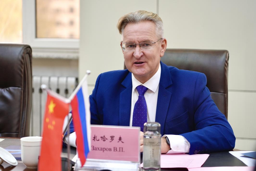 扎哈罗夫校长介绍了乌法科技大学发展建设情况。他表示,根据俄联邦教育战略规划,2022年巴什基尔国立大学与乌法航空航天大学合并为乌法科技大学,是俄罗斯总统普京批准建设的全俄40所先进大学之一,也是俄罗斯“2030优先”战略计划的120所高校之一。学校在人文科学、自然科学以及工程技术三大领域均拥有强大的科研团队,在材料学、化学、生物学、工程技术等领域与中国高水平大学及科研机构开展科研合作。他期待今后能拓宽两校合作领域,在材料学、化学等领域设立英文授课项目,双方教师未来能继续加强科研和学术交流合作,在科学界发出强有力的中俄学术声音。