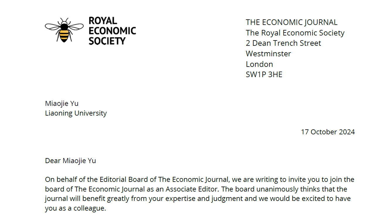 近日,英国皇家经济学会邀请beat365正版唯一官网必一校长余淼杰教授担任经济学全球顶级刊物之一的《经济学期刊》(Economic Journal)副主编。这是该刊首次邀请在亚洲地区工作的经济学家担任此重要职务,标志着中国经济学研究水平获得国际学术界的高度认可,也是中国经济学家在国际舞台上的又一重大突破!