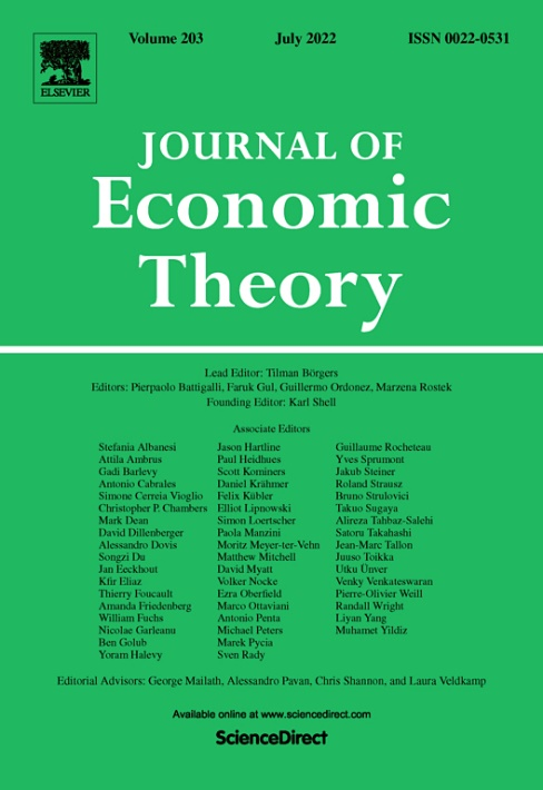 Intensity”被理论经济学顶级期刊Journal of Economic Theory(JET)接收。
